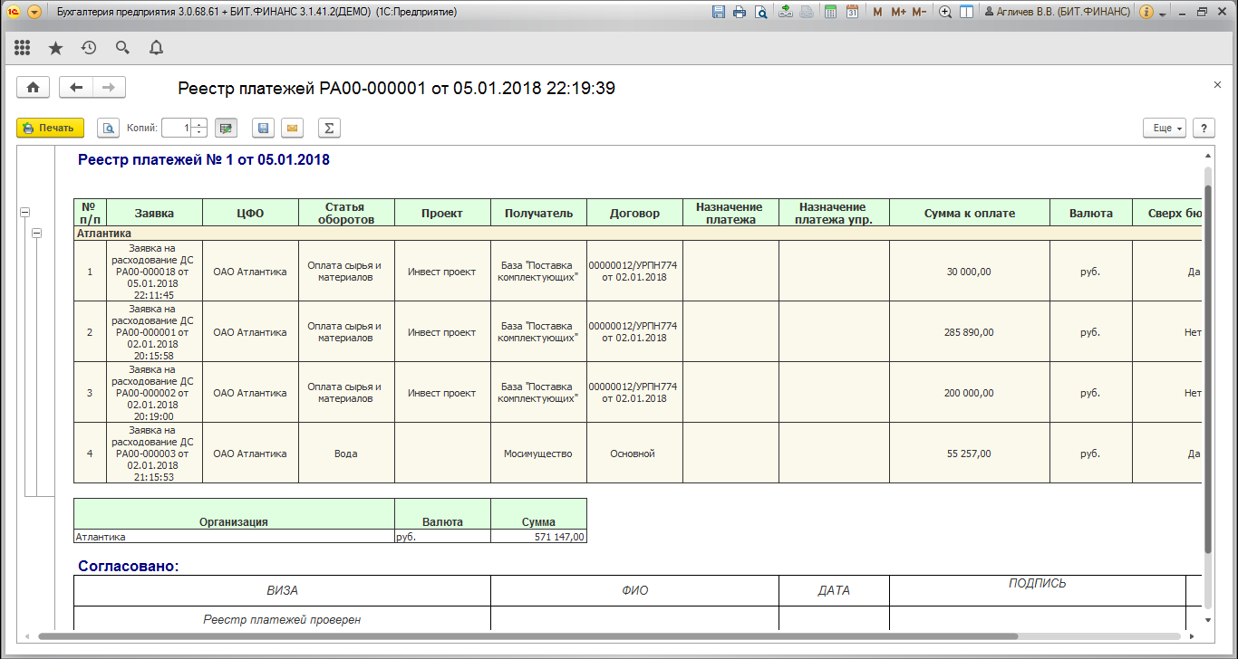 • Расчет остатков лимита по статьям с учетом запланированных заявок. Больше никаких перерасходов. Не допускайте просрочек оплат по договорам и штрафов с помощью графика платежей в 1С.