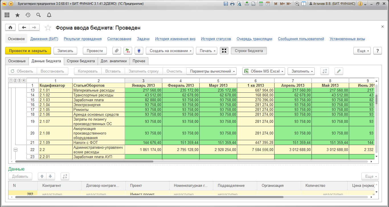 Быстрое обучение работе в БИТ.Финанс с нуля, благодаря знакомому интерфейсу 1С и таблиц Excel. Быстрые расчеты и достоверная информация.