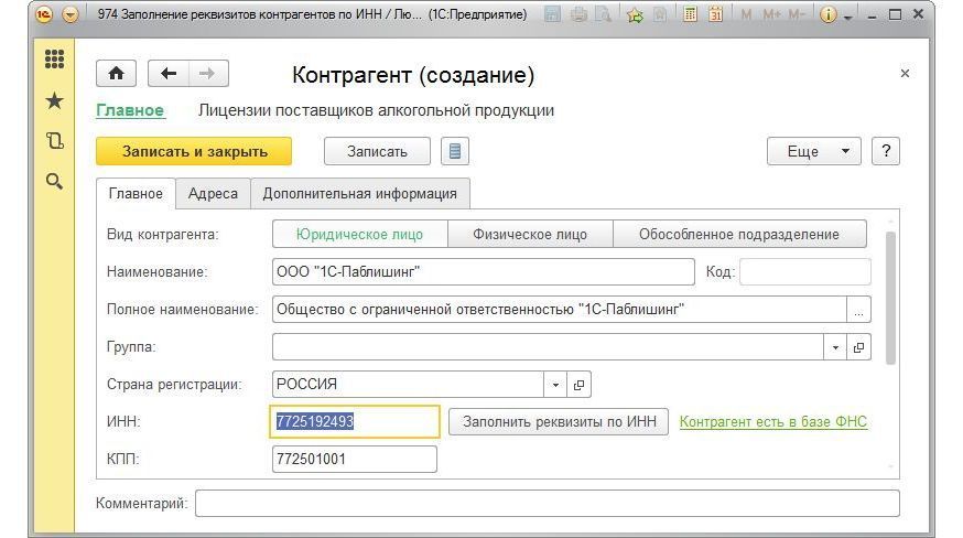 При наличии договора ИТС уровня ПРОФ подключим сервис 1С:Контрагент бесплатно.